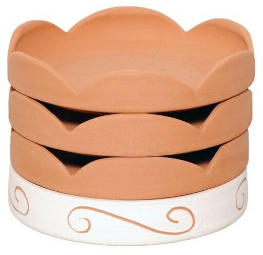 4 részes csíráztató tál, a felső részek lyukacsosak, a magvakról lecsorog a bő víz az alsó tálkákba, de a cserép nedvesen tartja a magokat. Ajánlott a napi 2-4 szeri öblítés.