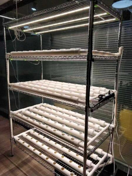 A vertikális farmok világszerte olyan gyorsan terjednek, mint a bennük termesztett zöldségek. Valójában ez egy nagyon hatékony módja a növénytermesztésnek, mivel a területet megsokszorozza az alkalmazott szintek számával. A mi esetünkben ez egy ötpolcos állvány, és négy emeleten hatékonyan tudjuk megvilágítani a palántákat, a legfelső szintet pedig a termesztőanyag tárolására használhatjuk.