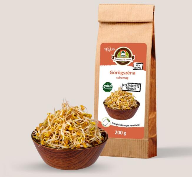 Görögszéna csíramagA görögszéna egy aromás fűszernövénye az indiai konyhának. Csírája népszerű, könnyen elkészíthető. Alig 3-4 naposan érdemes megenni őket, mert ilyenkor a legfinomabbak, amikor még aprók a csírák. Később keserű íze lesz, de aki kedveli, így is fogyaszthatja. Összetétel: görögszénaFelhasználás: A magokat áztasd be tiszta vízbe legalább 8 órára mielőtt elkezdenéd a csíráztatást. A csírázás ideje alatt naponta legalább két alkalommal alaposan öblítsd át a növényeid. Fogyasztás előtt mindig alaposan mosd meg és szemrevételezéssel és szaglással is ellenőrizd, hogy nem romlottak meg. Kezdd a csíráztatást egy ablaktól távoleső, sötétebb helyen, majd az utolsó 1 napon tedd ki a fényre, hogy a levélkezdemények kizöldüljenek. Mindez az extra vitaminok és klorofill termelése miatt szükséges.