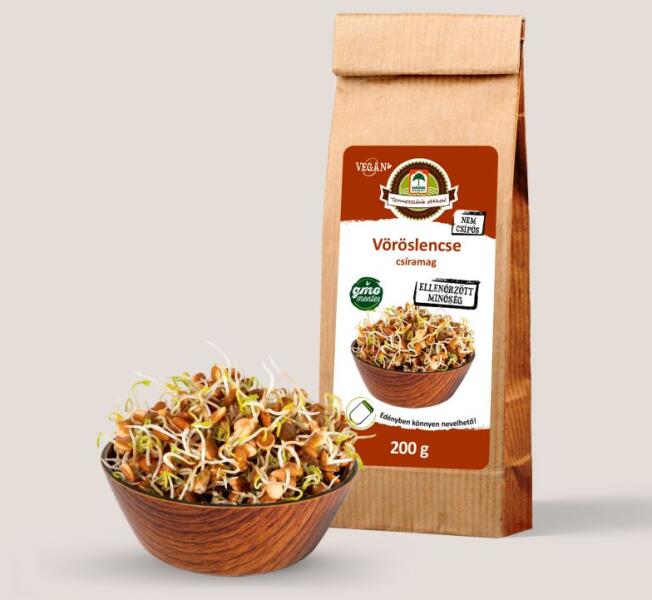 Vöröslencse csíramagCsírája lágy és diós ízű, idősebben enyhén kesernyés. Rostban és fehérjében gazdag hüvelyes, amit pár nap alatt el tudsz készíteni. Adhatod salátákhoz, szendvicsekhez vagy eheted köretként. Összetétel: vöröslencseFelhasználás: A magokat áztasd be tiszta vízbe legalább 8 órára mielőtt elkezdenéd a csíráztatást. A csírázás ideje alatt naponta legalább két alkalommal alaposan öblítsd át a növényeid. Fogyasztás előtt mindig alaposan mosd meg és szemrevételezéssel és szaglással is ellenőrizd, hogy nem romlottak meg. Kezdd a csíráztatást egy ablaktól távoleső, sötétebb helyen, majd az utolsó 1 napon tedd ki a fényre, hogy a levélkezdemények kizöldüljenek. Mindez az extra vitaminok és klorofill termelése miatt szükséges.